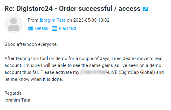 After placing an order, the buyer gets access to the success page, where he can download the installation files for the program and receive instructions for downloading and installing, as well as instructions for activating his copy of the software.